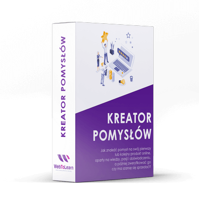 Kurs online KREATOR POMYSŁÓW - Znajdź pomysł na swój pierwszy lub kolejny produkt online i zweryfikuj, czy ma on szansę się sprzedać. Wartość: 497 zł.