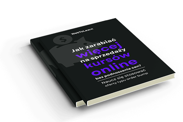 E-book JAK ZWIĘKSZYĆ SPRZEDAŻ KURSÓW ONLINE? - Naucz się stosować order bumps, czyli oferty uderzeniowe, na które klient natrafia w koszyku, jeszcze nim przejdzie do płatności. Wartość: 47 zł.